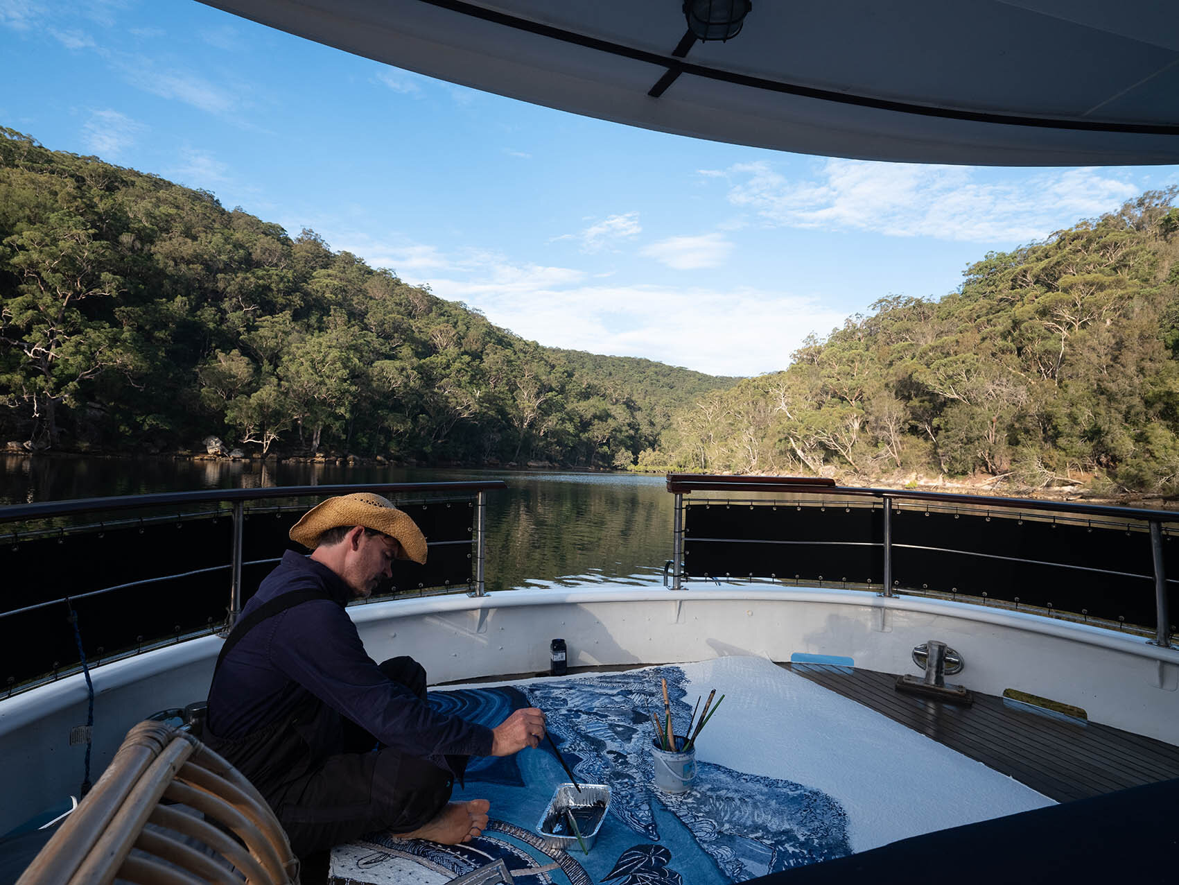 “Joshua Yeldham’s practice spans painting, sculpture, photography and carved works on paper. Guided by a spiritual connection to the land, his distinctive visual language blends narrative, myth, imagination and a reverence for nature. His works often combine mediums, from oil paintings with sculptural assemblage to photographs that are intricately pierced and carved, and at times even musical sculptures that bring sound into dialogue with his images. For Yeldham, a painting is not simply a window onto the world but a tool of transformative self-discovery, offering viewers a space of stillness, reverie and connection with the natural world”